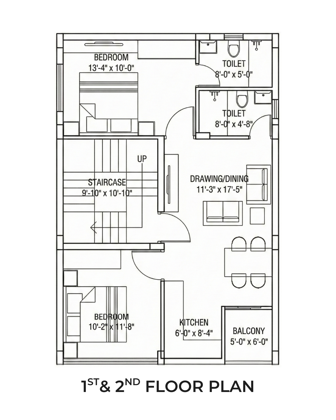 A well-planned 4BHK that brings your entire family comfortably under one roof. The internal staircase connects every level seamlessly, creating a true single-family residence. Spacious drawing and dining areas anchor daily life, while well-sized bedrooms with attached dress and washrooms ensure comfort and privacy. A practical kitchen, utility spaces, and open balconies add convenience and natural light. This layout gives you the space you need for parents, children, and guests, without adjusting your life around limitations. It’s built to let everyone live together comfortably for years to come.