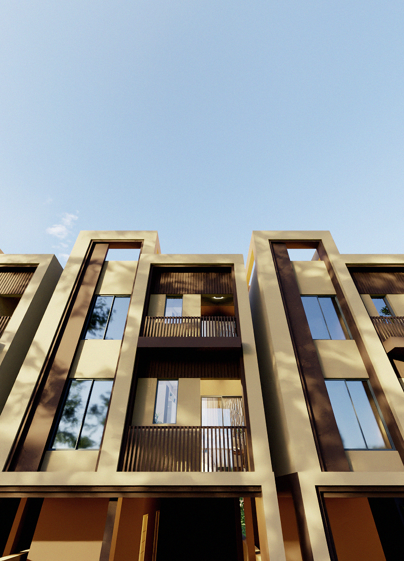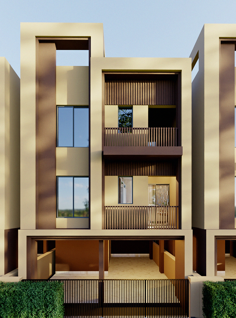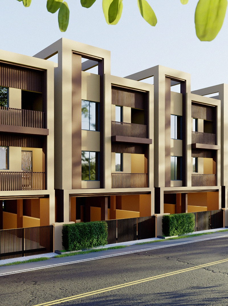 Step through your own front gate, the house rises three storeys, simple and solid, sitting on land that is entirely yours.